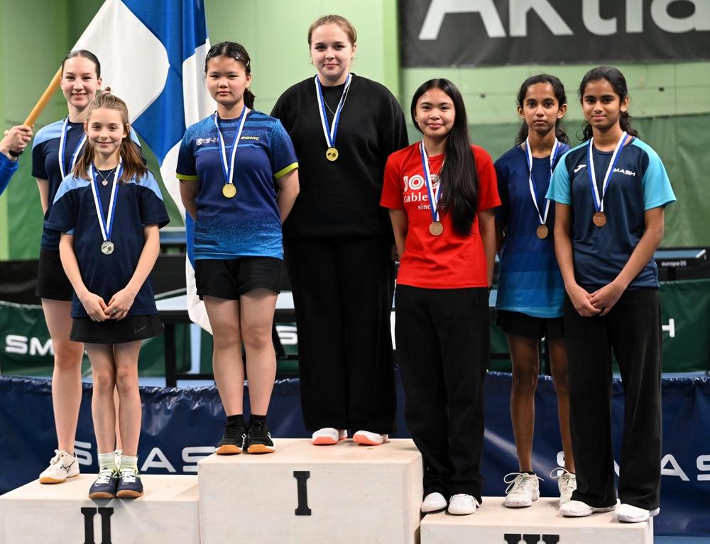 Tyttöjen luokassa osallistujamäärä jäi yhdeksään, ja Smashin Amarasinghen kolme siskosta jäi tällä kertaa ilman voittoja. Semifinaalissa kisojen kärkisijoitettu Jaimielee Enriquez kaatoi Tip-70 seurakaverinsa Ge Anne Quinalin helpohkosti luvuin 3-0.