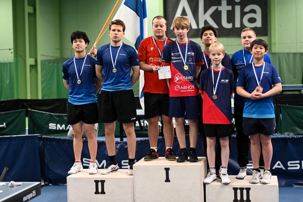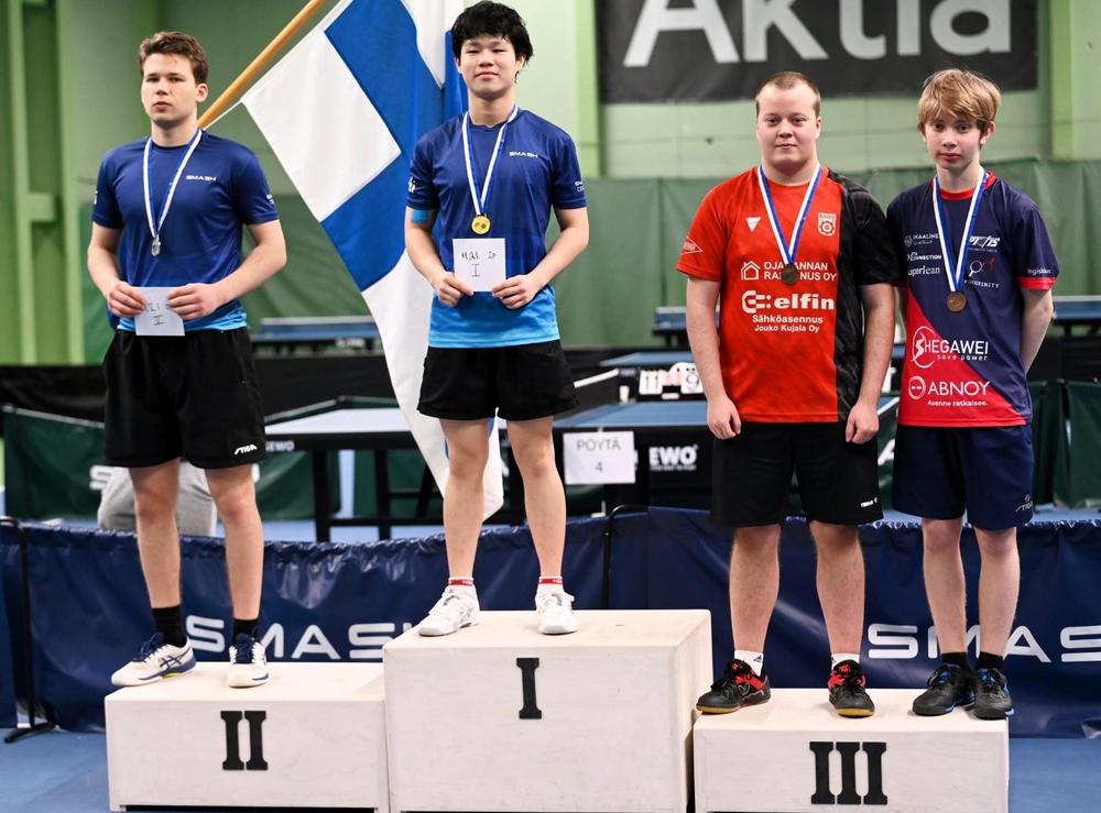 Poikien nelinpelissä suuntaviivat olivat selvät ja niiden mukaan edettiin. Pari Juho Kahlos/Long Nguyen eteni finaaliin selvin numeroin ja vastaan saatiin semifinaaleista tutut Matias Vesalainen/Jimi Koivumäki, jotka etenivät loppuotteluun vähintään yhtä selvin numeroin. Matiaksen ja Jimin yhteispeli oli rautaa ja kun Juho ja Long eivät olleet yhtä hyviä kun osiensa summa, oli lopputuloksena selvä 0-3 voitto kaksinpelin pronssimitalisteista muodostuneelle parille. Pronssia Hai Nguyen/Eetu Mäkelä sekä Joel Koivumäki/Axel Visuri.