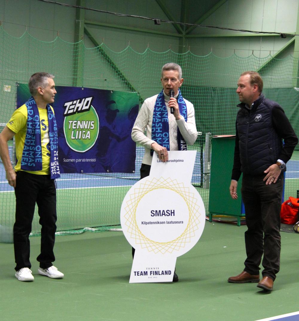 Ennen otteluiden alkua seurassa koettiin myös erityinen hetki: Suomen Tennisliiton toimitusjohtaja Teemu Purho luovutti Smashille Kilpatenniksen laatuseuramerkin. Tunnustus korosti sitä pitkäjänteistä työtä, jota seurassa tehdään päivittäin kilpatenniksen eteen.