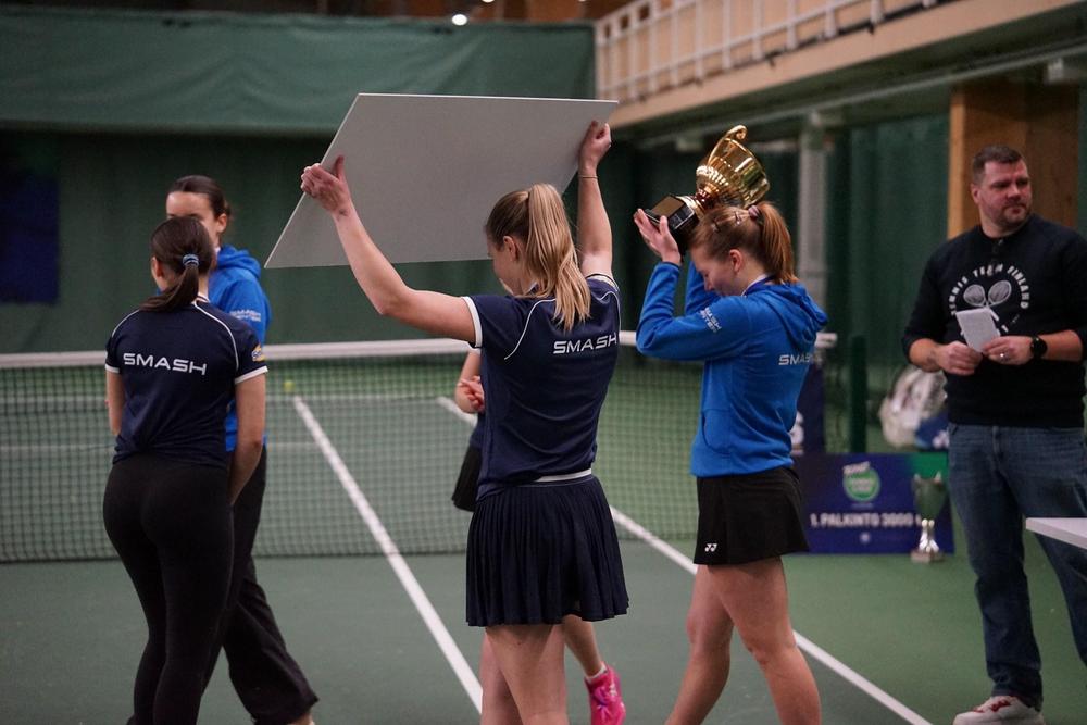 Naisten finaalissa HLK ei pystynyt haastamaan Smashiä kaksinpelien aikana. Ella Haavisto voitti ykköspelaajien ottelun 6–1, 7–6 ja päätti liigakauden tappiotta. Nuppu Palm ja Wilhelmina Vainikka ratkaisivat loput pisteet kolmieräisten kautta, mikä varmisti Smashin mestaruuden 3–0. Haavisto nimettiin finaalien arvokkaimmaksi pelaajaksi, ja erityisesti Vainikan nousu tappioasemasta ratkaisevassa ottelussa kuvasi joukkueen sitkeyttä ja malttia.